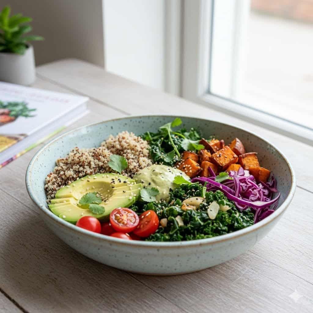Build your perfect vegan Buddha bowl: Roasted veggies, quinoa, and tahini for a nourishing, plant-powered feast.